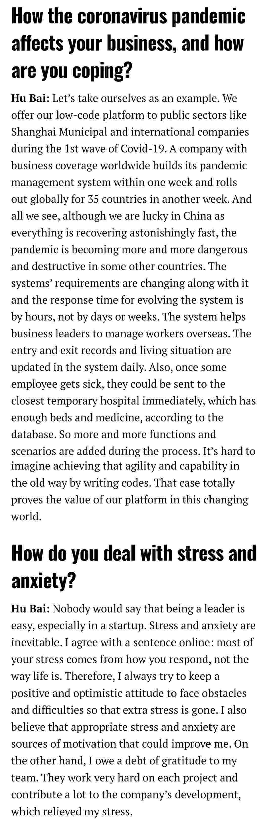 2021年年初,,,,,爱湃斯科技CEO胡柏受邀接受法媒Startup.info的专访,,,,,与Startup info的读者分享了自己的创业经历、、、、、、以及低代码平台小微钱包的创新之处。。。。。。。